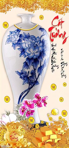 Tranh bình hoa nghệ thuật chiếc bình in hoa mẫu đơn