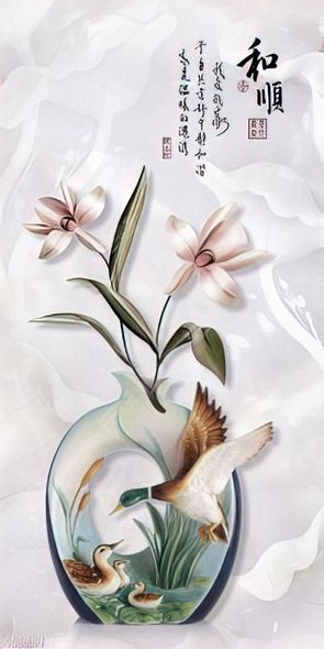 Tranh bình hoa psd những bông hoa bên đàn vịt trời
