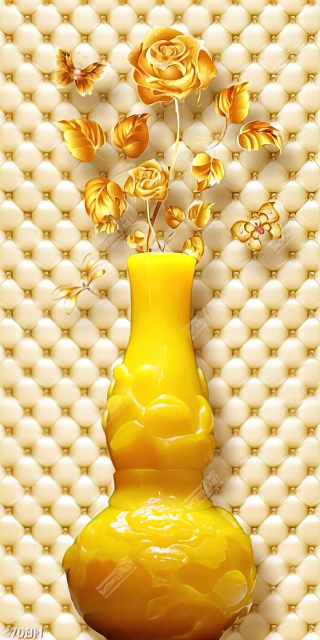 Tranh bình hoa dáp vàng trên nền đính ngọc trang trí