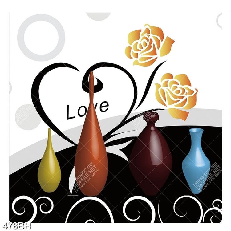 Tranh bình hoa psd những chiếc bình nhiều màu sắc