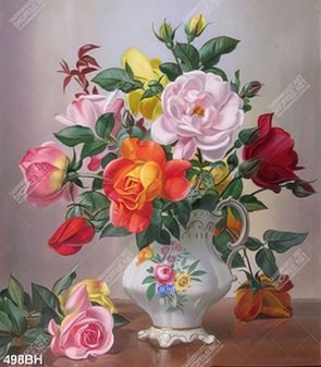 Tranh bình hoa in uv những bông hồng trên bàn tiệc