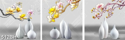 Tranh bình hoa mộc lan dáp vàng decor 3 tấm đa dạng màu sắc