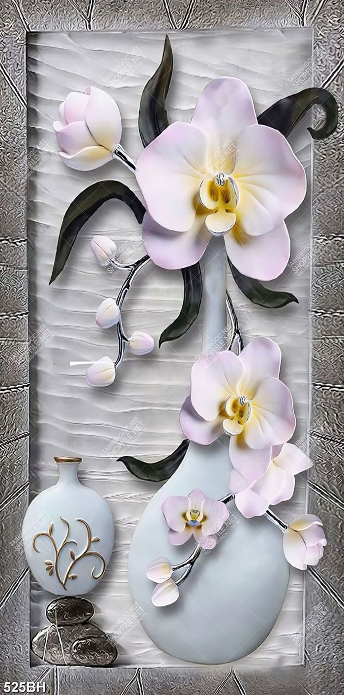 Tranh bình hoa in uv những bông hoa phong lan trắng tinh khiết