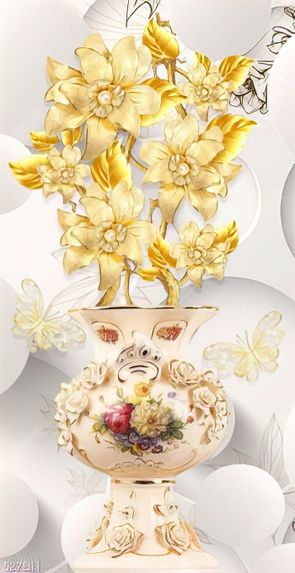 Tranh bình hoa 3d hoa mộc lan dáp vàng lấp lánh trên nền trắng