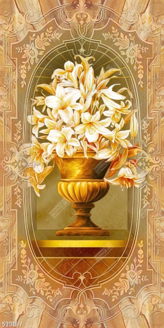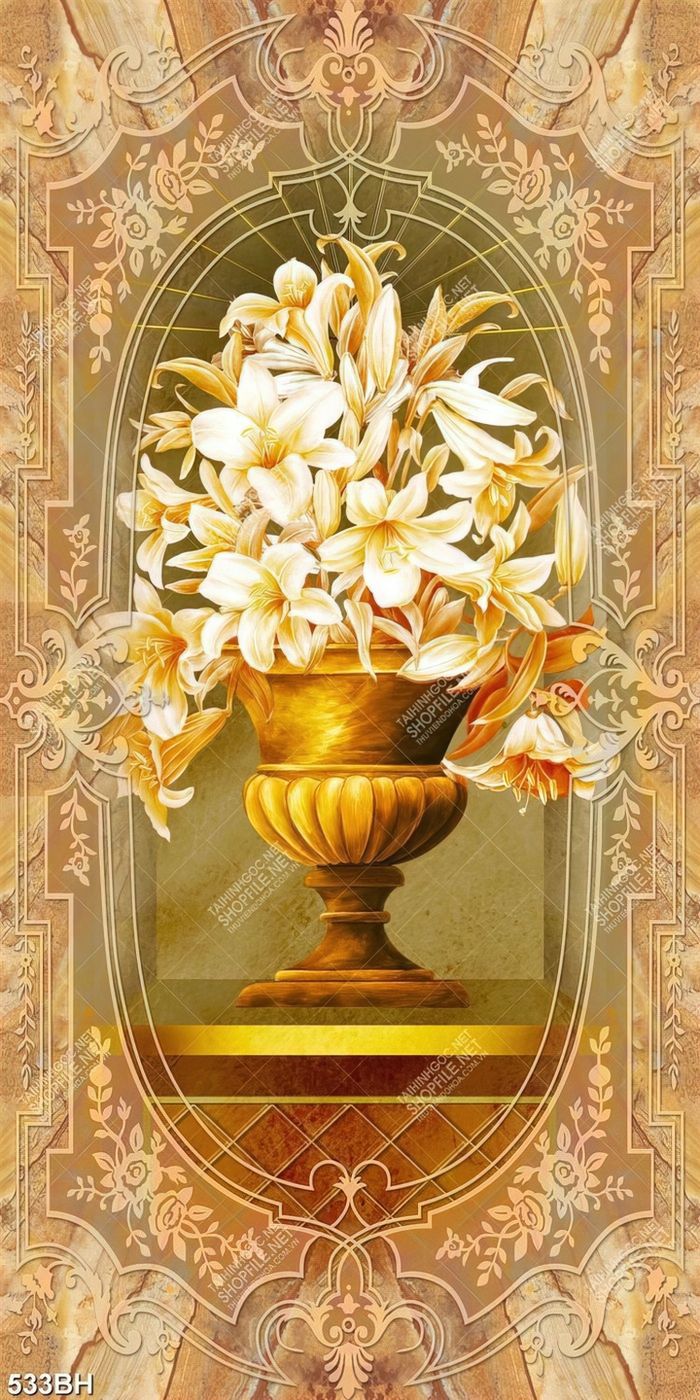 Tranh bình hoa trang trí hoa mộc lan trong chiếc bình vàng