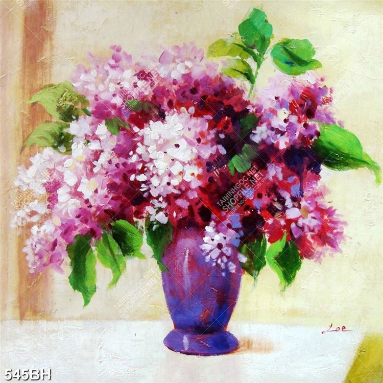 Tranh bình hoa 3d những chùm hoa nở rộ khoe sắc trên bàn