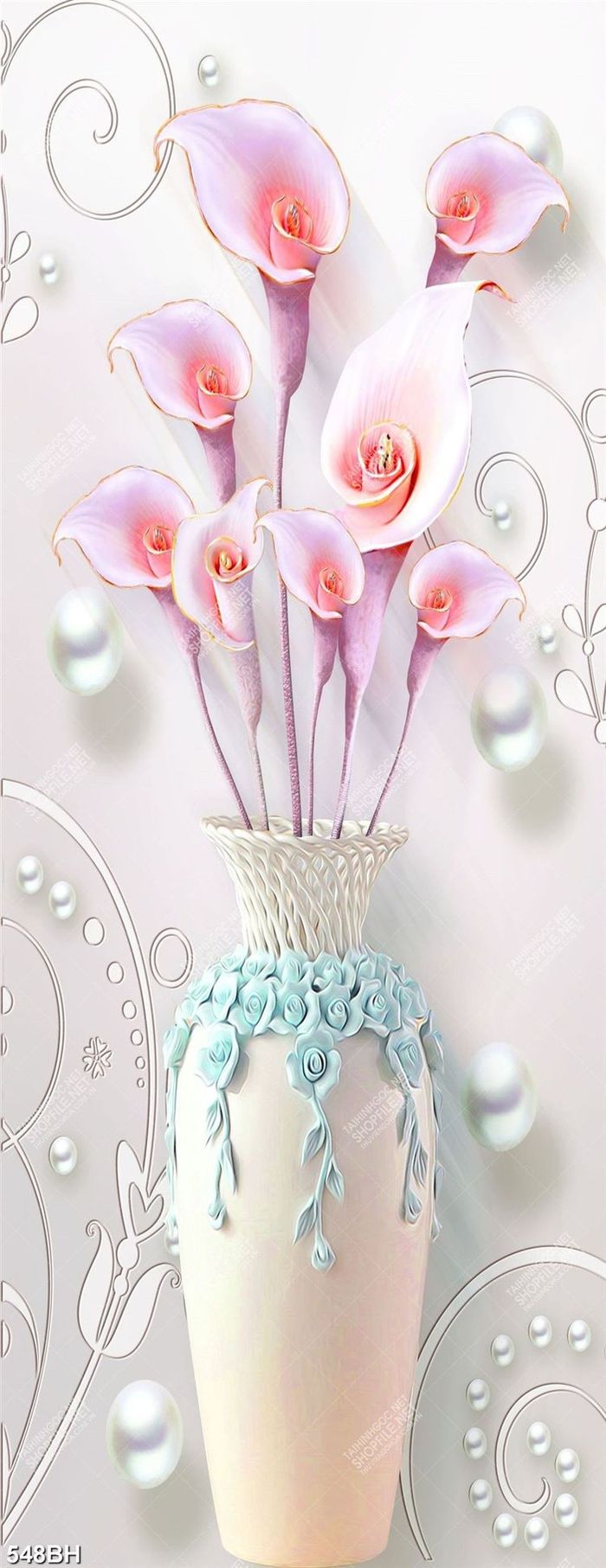 Tranh bình hoa decor những bông hoa lục bình trong bình gốm