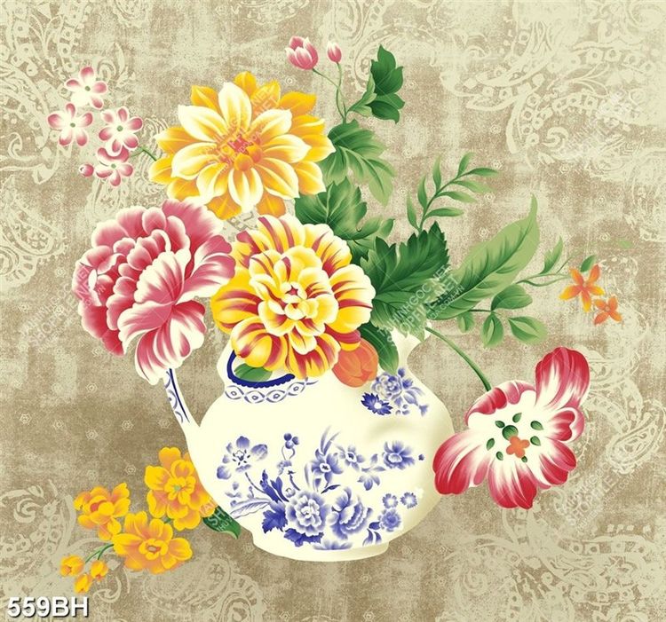 Tranh bình hoa psd những bông hoa mẫu đơn khoe sắc rực rỡ