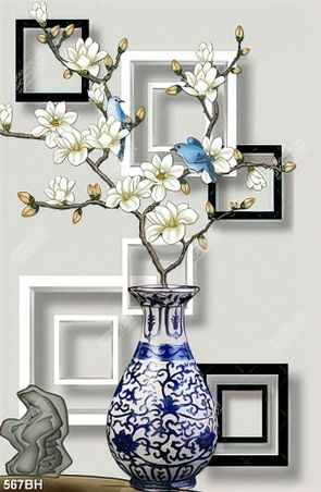 Tranh bình hoa nghệ thuật cành hoa mộc lan trắng tinh khiết