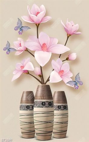Tranh bình hoa in canvas đàn bướm bay lượm bên hoa mộc lan