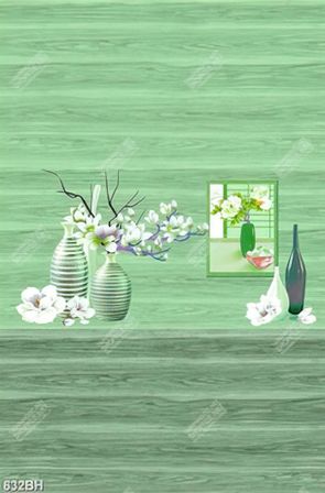 Tranh bình hoa 3d nhành hoa ành đào trắng bên cửa sổ xanh