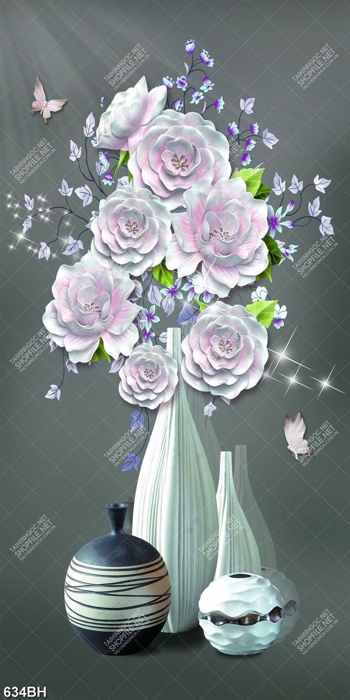 Tranh bình hoa dán tường những bông hoa mẫu đơn giả ngọc