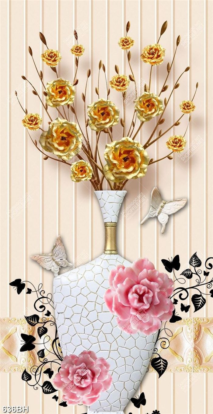 Tranh bình hoa nghệ thuật những bông hoa hồng dáp vàng