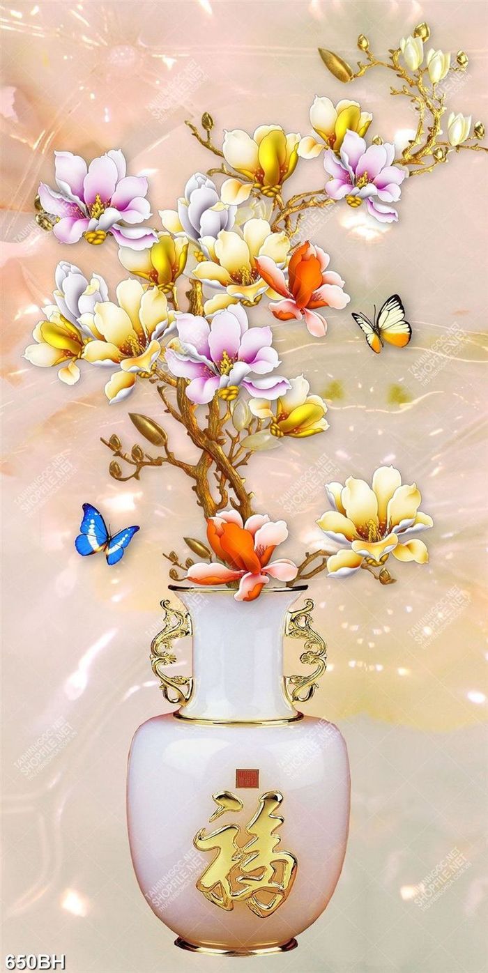 Tranh bình hoa 3d những bông hoa mộc lan dáp vàng khoe sắc