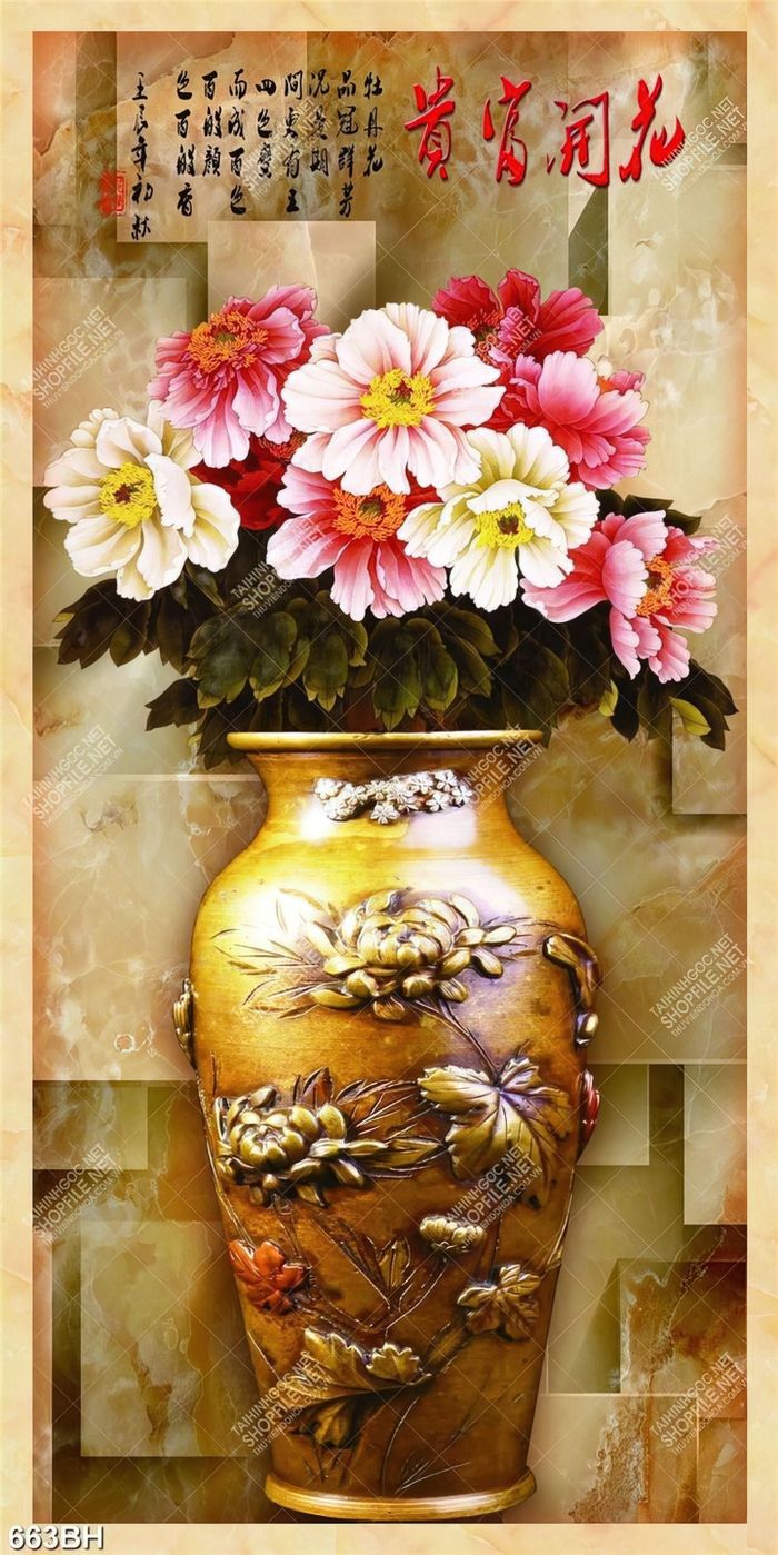 Tranh bình hoa những bông hoa nở rộ khoe sắc nghệ thuật