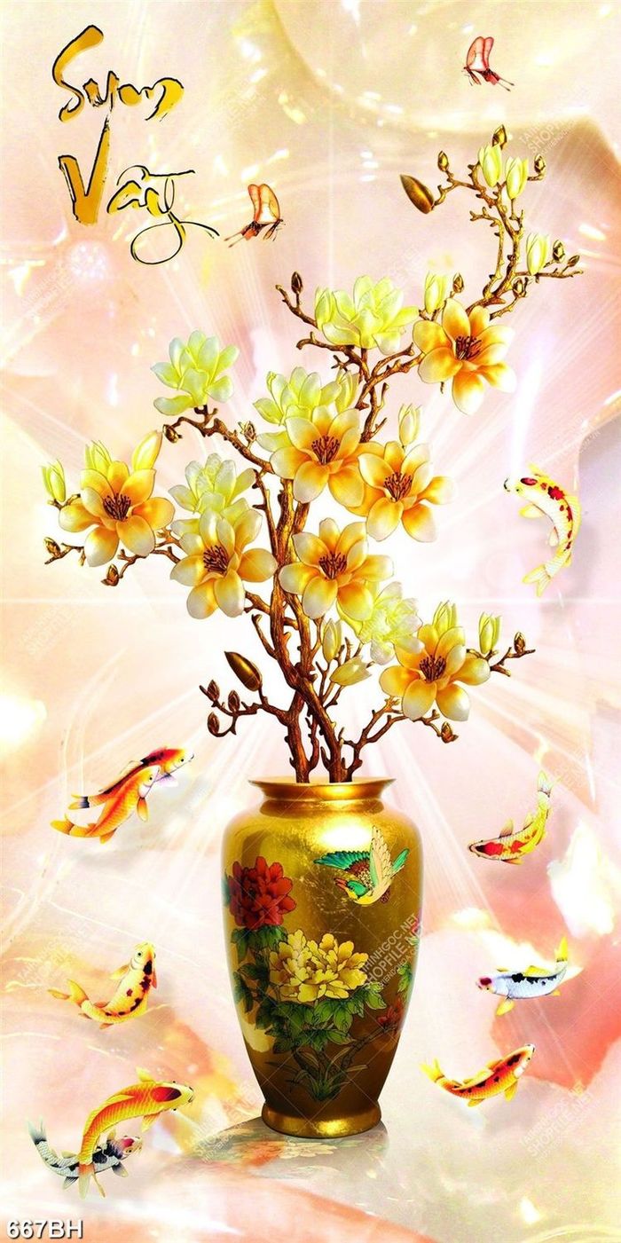 Tranh bình hoa treo tường những bông hoa mộc lan khoe sắc