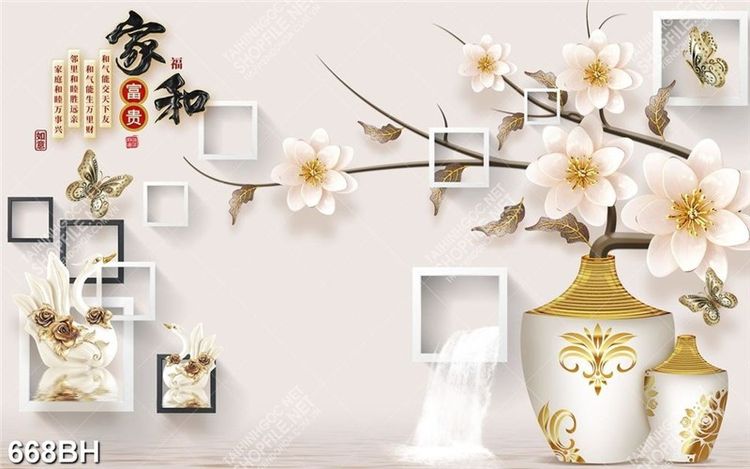 Tranh bình hoa 3d những bông hoa đào bên tường họa tiết