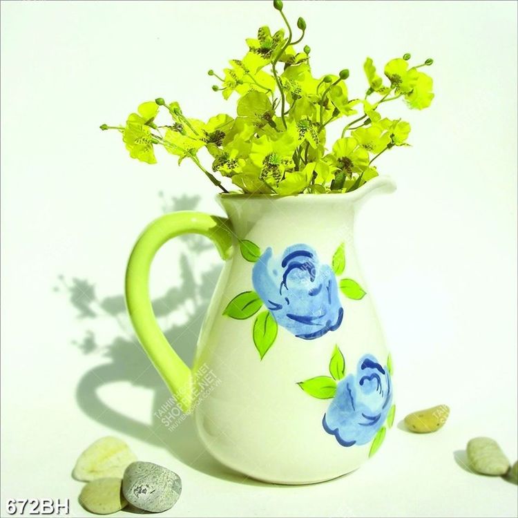 Tranh bình hoa cải vàng bên những hòn đá cuội nghệ thuật