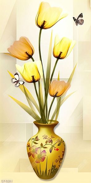 Tranh bình hoa trang trí chú bướm xinh bên bông hoa tulip