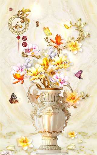 Tranh bình hoa 3d hoa mộc lan dáp vàng khoe sắc trên nền trắng