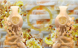 Tranh decor bình hoa giả ngọc và cành hoa mẫu đơn dáp vàng