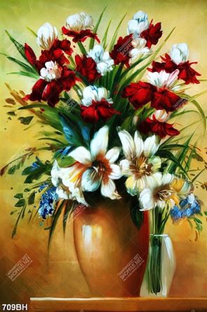 Tranh bình hoa psd những bông hoa huệ đỏ trắng đan xen nhau