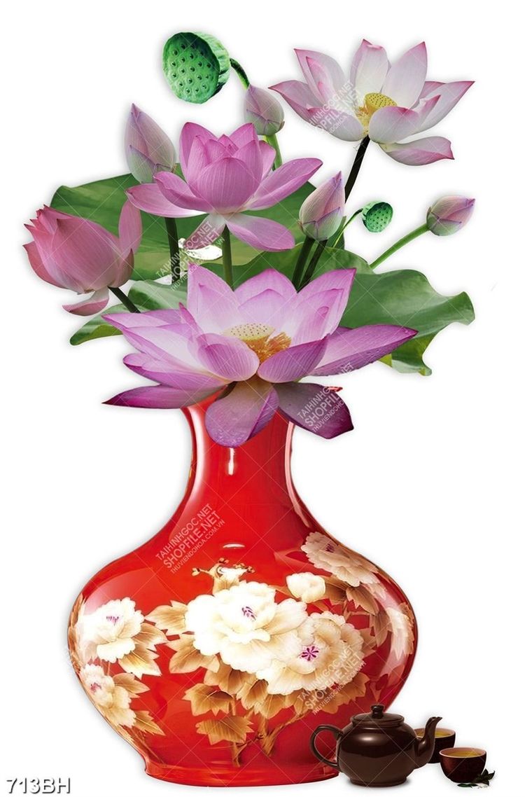 Tranh bình hoa 3d những bông hoa sen hồng trong chiếc bình