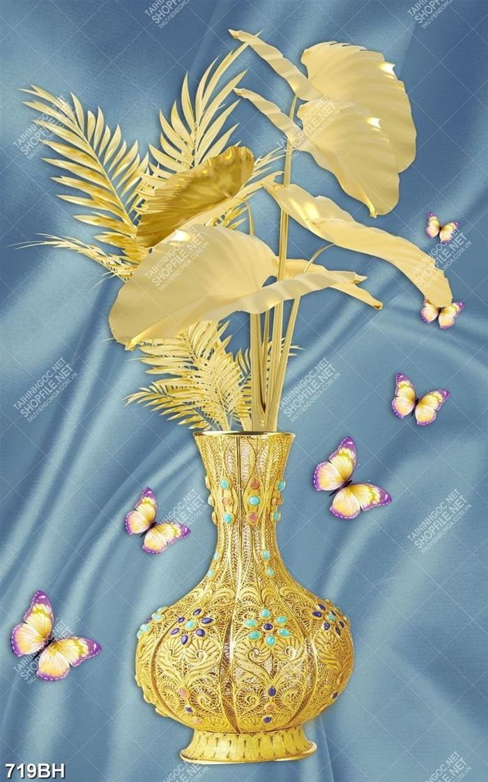 Tranh bình hoa trang trí những bông hoa dáp vàng đan xen nhau
