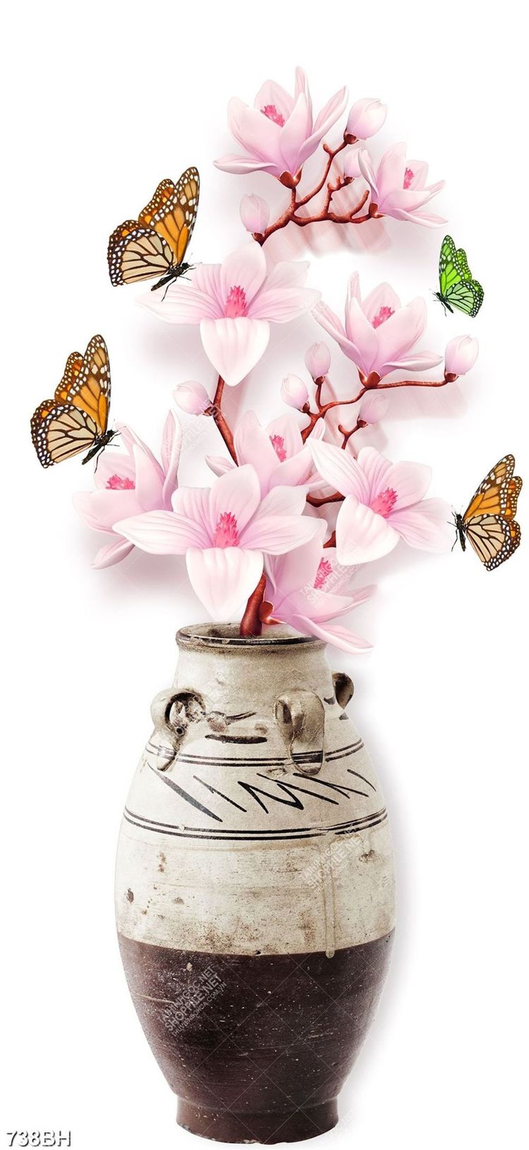 Tranh bình hoa in uv cành hoa mộc lan bên đàn bướm xinh đẹp
