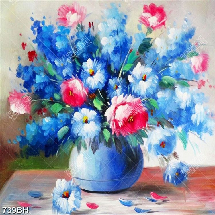 Tranh bình hoa treo tường những bông hoa màu xanh lam