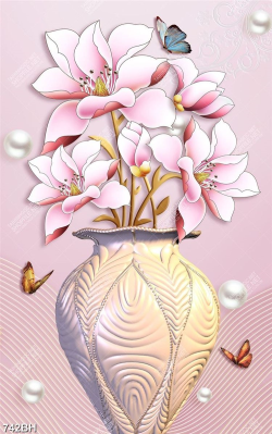 Tranh bình hoa psd cành hoa mộc lan khoe sắc bên đàn bướm