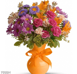 Tranh bình hoa hồng nhung và cúc vàng khoe sắc dán tường