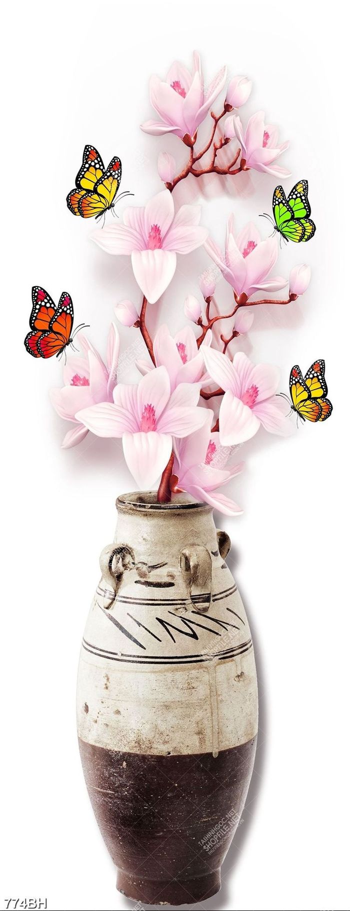Tranh bình hoa mộc lan bên đàn bướm xinh đẹp in canvas