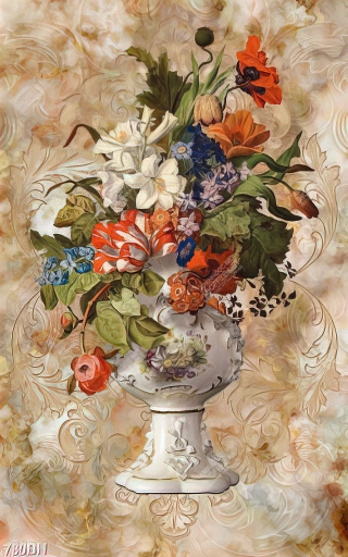 Tranh bình hoa tươi khoe sắc trên nền bức tường cổ điển in uv