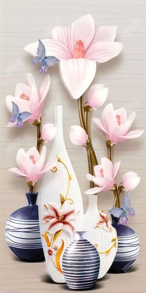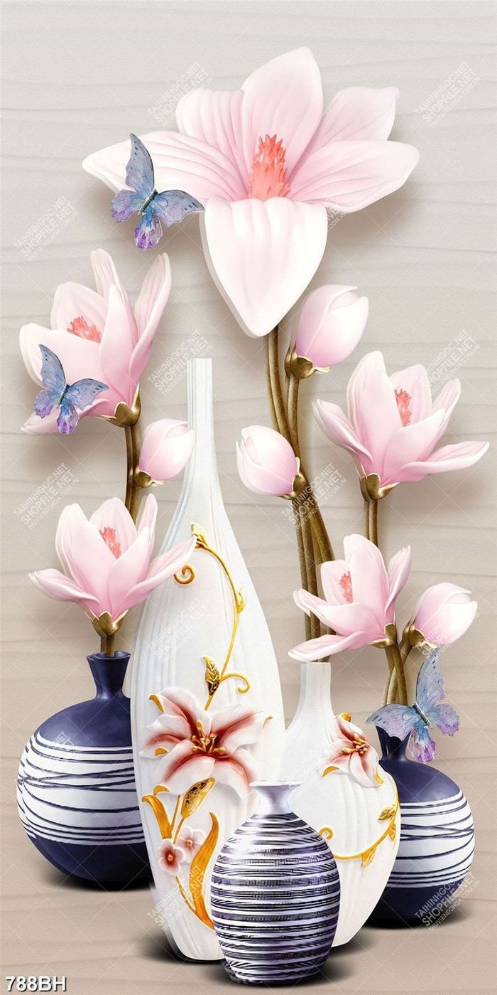 Tranh bình hoa mộc lan bên đàn bướm xinh đẹp trang trí