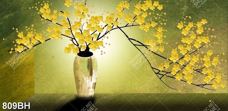 Tranh bình hoa 3d những bông hoa mai vàng khoe sắc
