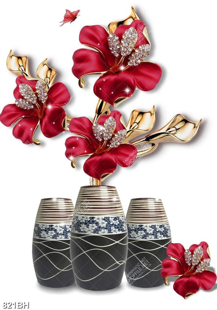 Tranh bình hoa đâm bụt khoe sắc đỏ trên nền trắng decor