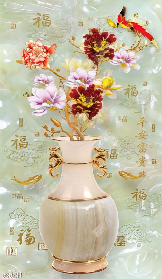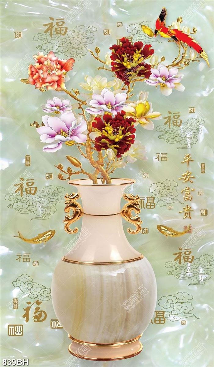 Tranh bình hoa decor đàn cá chép tung tăng bên cành mộc lan