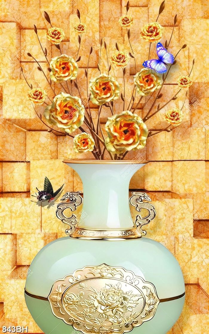 Tranh bình hoa in uv những bông hoa hồng dáp vàng xinh đẹp