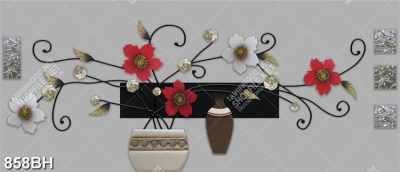 Tranh decor bình hoa những bông hoa đỏ trắng trên bức tường