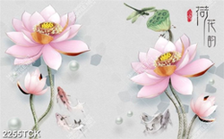Tranh đàn cá chép bơi tung tăng trong hồ sen giả ngọc