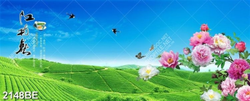 Tranh cánh đồng trà xanh in kính bếp