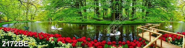 Tranh hồ nước Hà Lan in kính bếp
