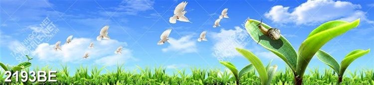 Tranh cánh đồng cỏ in kính bếp