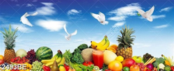 Tranh trái cây và chim bồ câu in kính bếp
