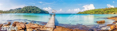 Tranh phon cảnh biển trên sông in kính bếp