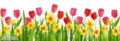 Tranh hoa tulip vàng và đỏ in kính bếp