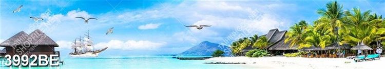 Tranh khu nghỉ dưỡng trên biển in kính bếp