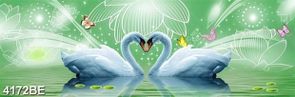 Tranh thiên nga và nền xanh ngọc in kính bếp