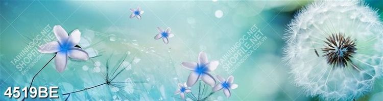 Tranh hoa bồ công anh và hoa ly in kính bếp